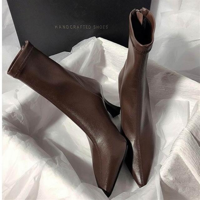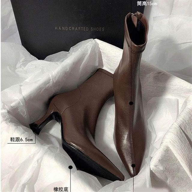 SOLE 覓 法式尖頭短靴 氣質短靴 跟靴 增高靴子 新款軟皮短靴 百搭靴子 顯瘦靴子 氣質名媛風 日常百搭靴子 靴子女