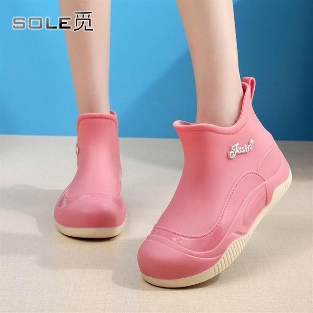 SOLE 覓 新款雨鞋女時尚外穿短筒水鞋防水防滑加絨雨靴輕便平底廚房女膠鞋