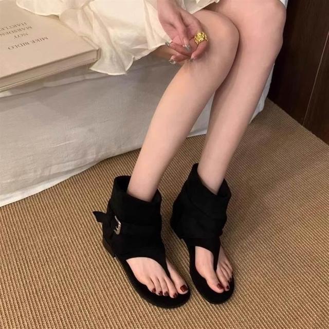 SOLE 覓 新品特價夾趾凉靴 粗跟涼靴復古辣妹涼靴 百搭休閒牛仔涼靴 復古辣妹堆堆靴 褲管凉靴 增高靴 小個子 靴子女