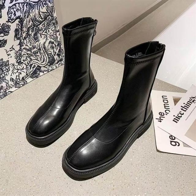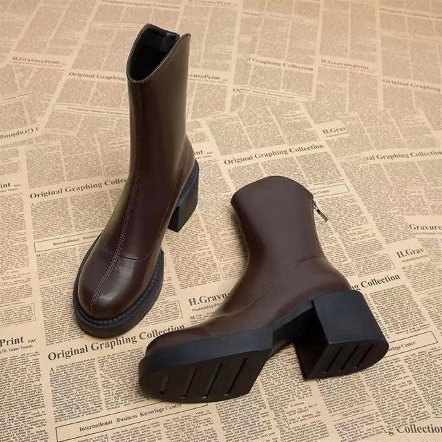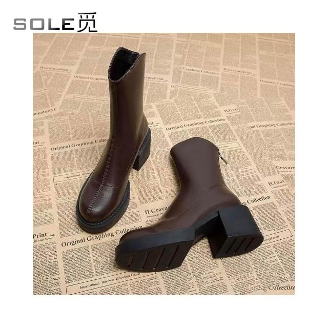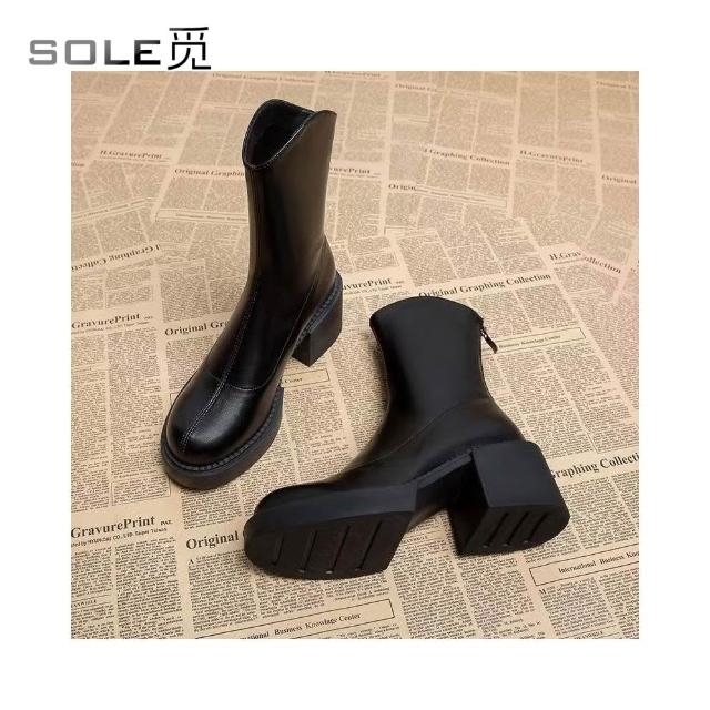 SOLE 觅 大尺碼35-40中筒靴短靴高跟短靴女秋冬單靴粗跟瘦瘦靴爆款馬丁靴 切爾西靴 中筒靴 马丁靴 短靴