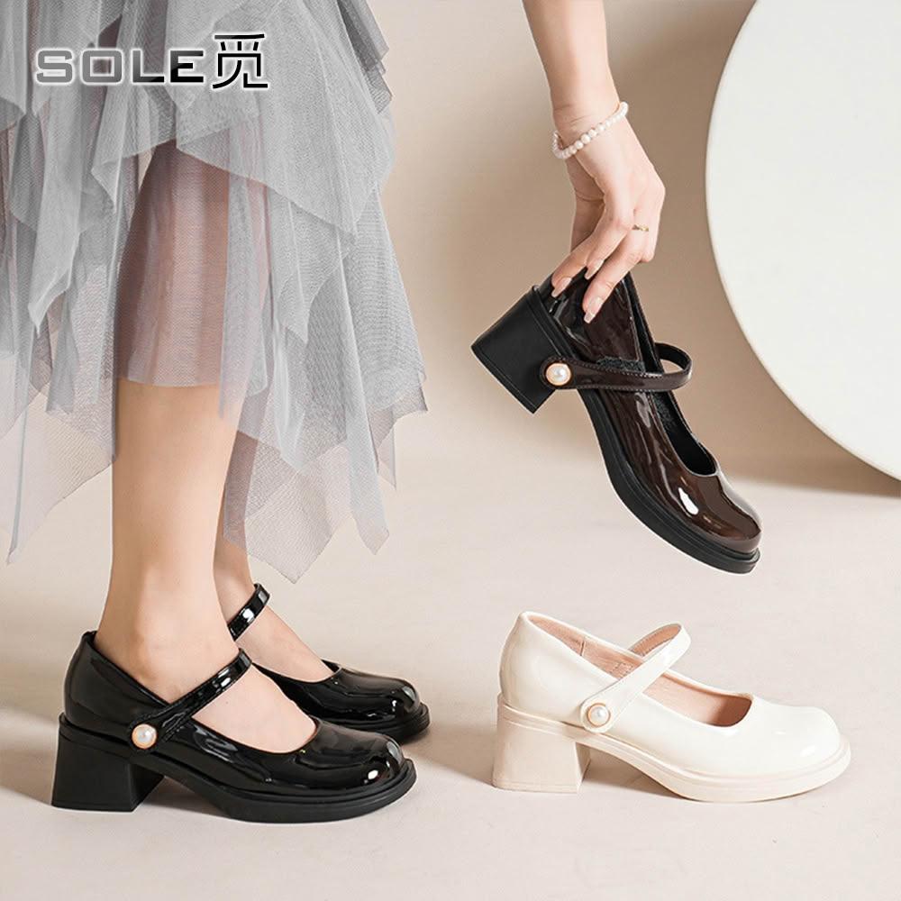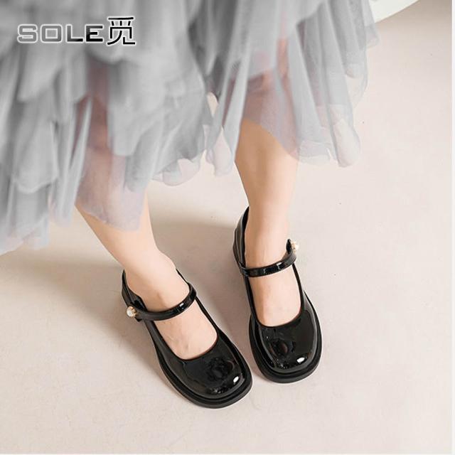SOLE 觅 厚底瑪麗珍鞋 英倫風復古黑色小皮鞋 春夏新款跟鞋 淺口粗跟法式瑪麗珍單鞋 跟鞋女