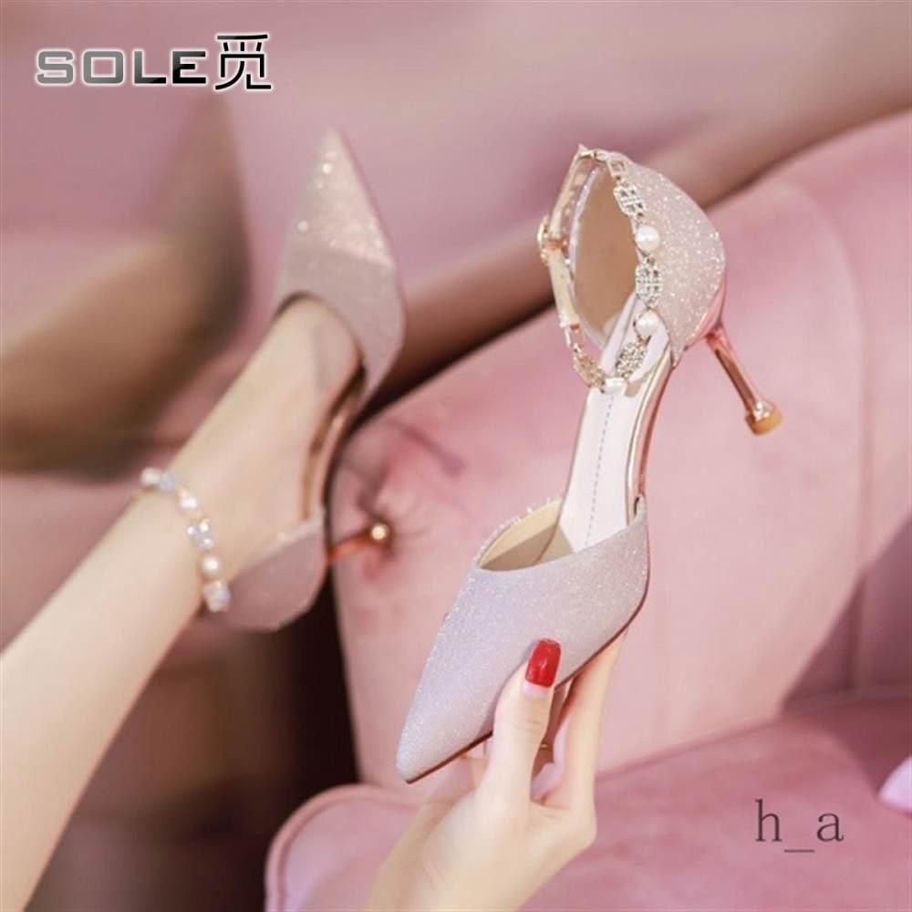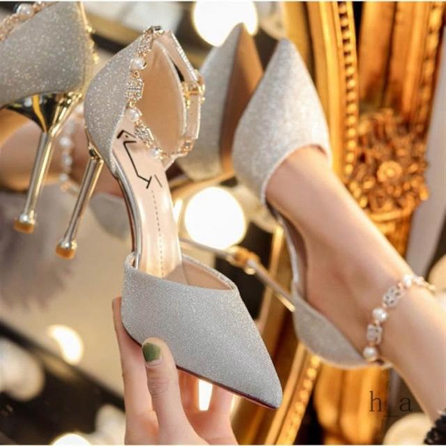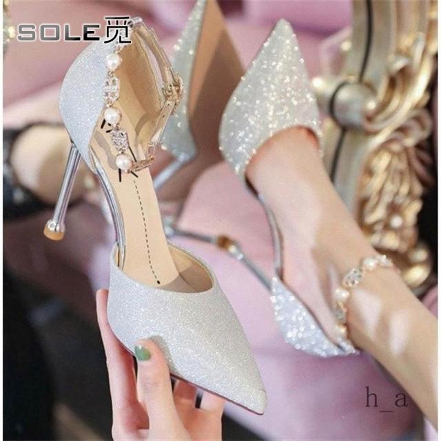 SOLE 覓 高跟鞋 細跟鞋 時尚尖頭跟鞋 婚鞋 大碼女鞋 41碼 銀色高跟鞋 高跟涼鞋設 新款大碼氣質女神范一字帶單鞋