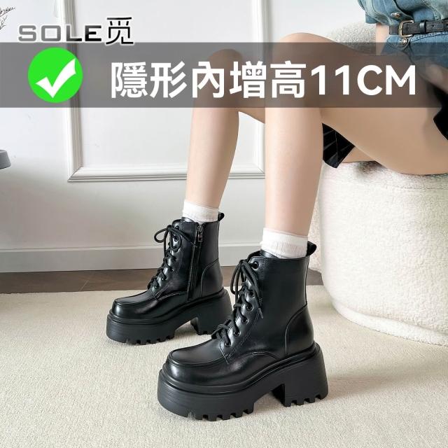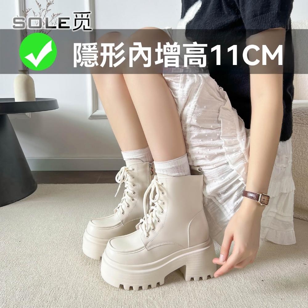 SOLE 觅 馬丁靴女2025年新款美拉德棕色單靴英倫風厚底增高小個子短靴女