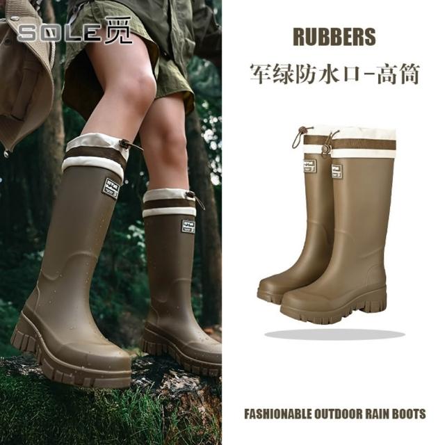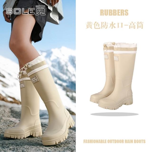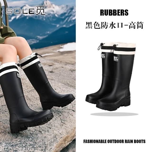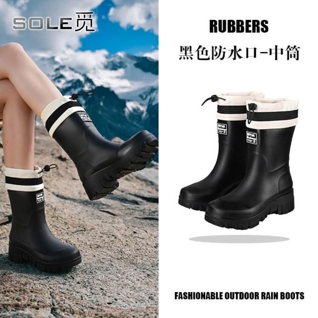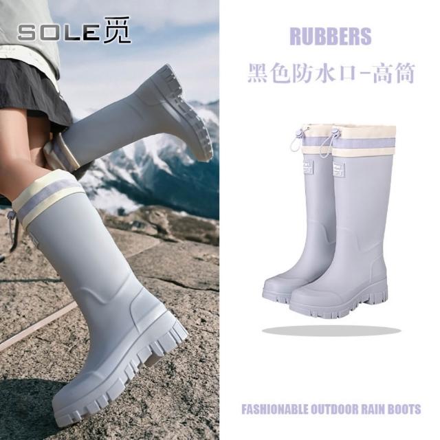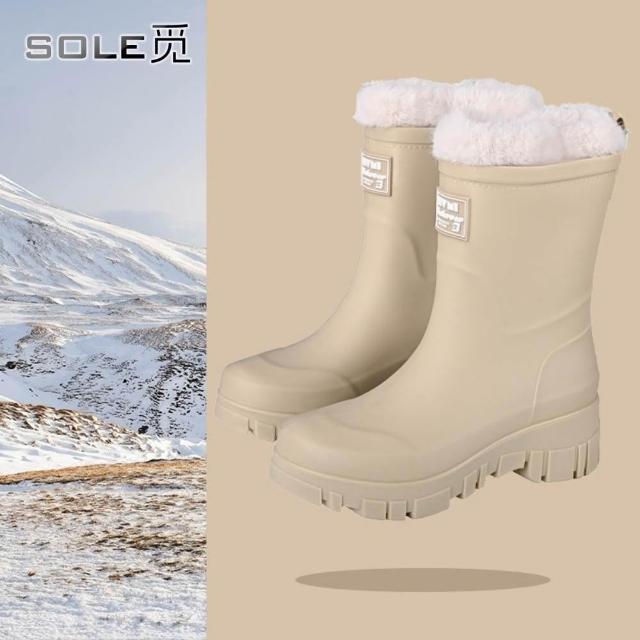 SOLE 觅 防水口款 高筒雨鞋女時尚雨靴戶外中筒防水鞋加絨加厚保暖膠鞋束口水靴