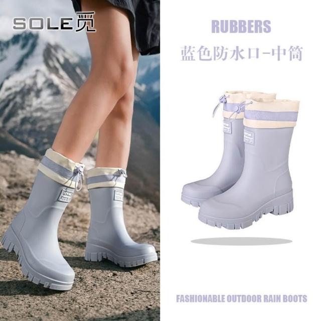 SOLE 觅 防水口款 高筒雨鞋女時尚雨靴戶外中筒防水鞋加絨加厚保暖膠鞋束口水靴