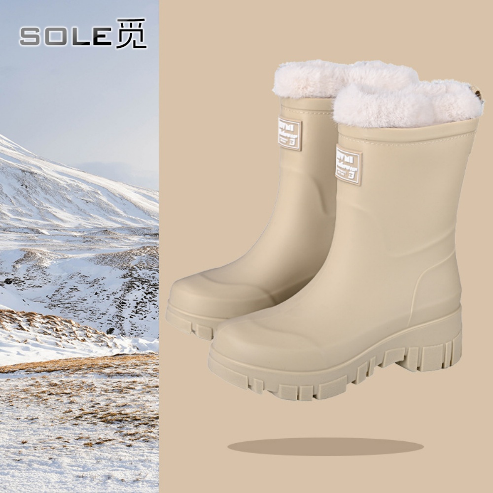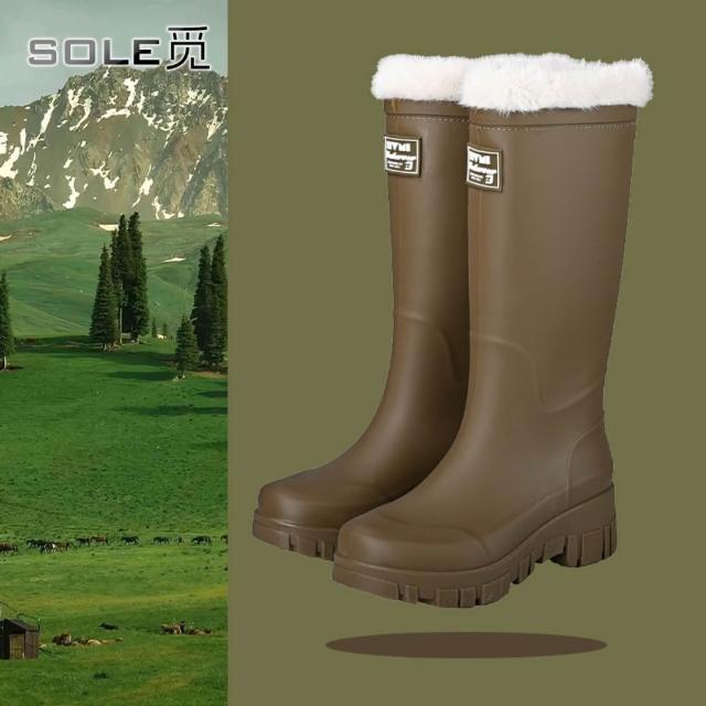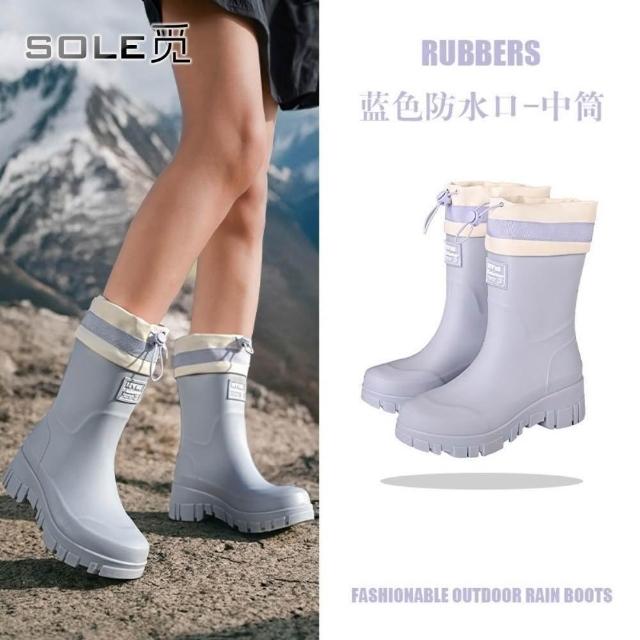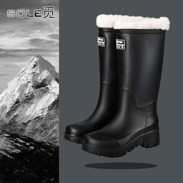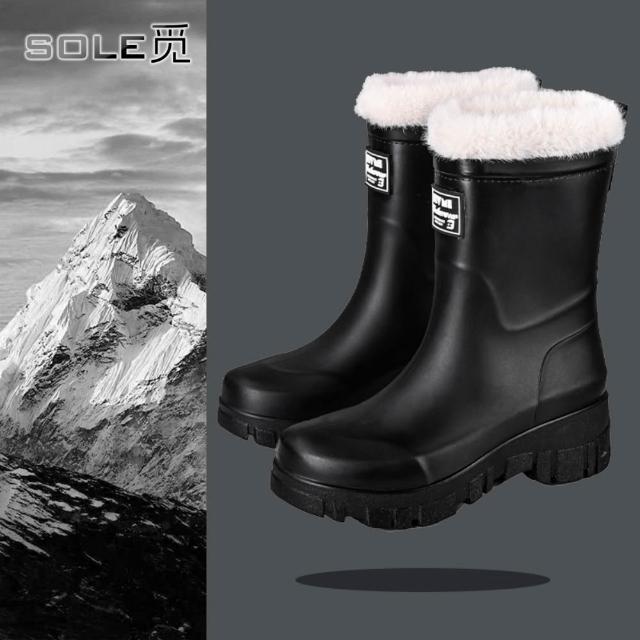 SOLE 觅 固定絨款 高筒雨鞋女時尚雨靴戶外中筒防水鞋加絨加厚保暖膠鞋束口水靴