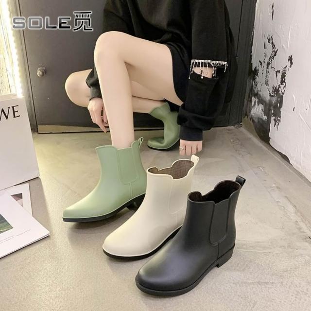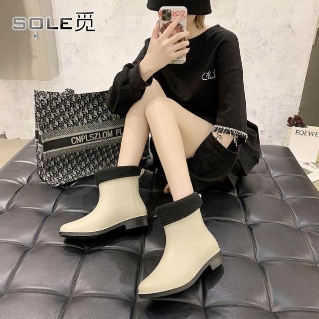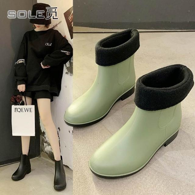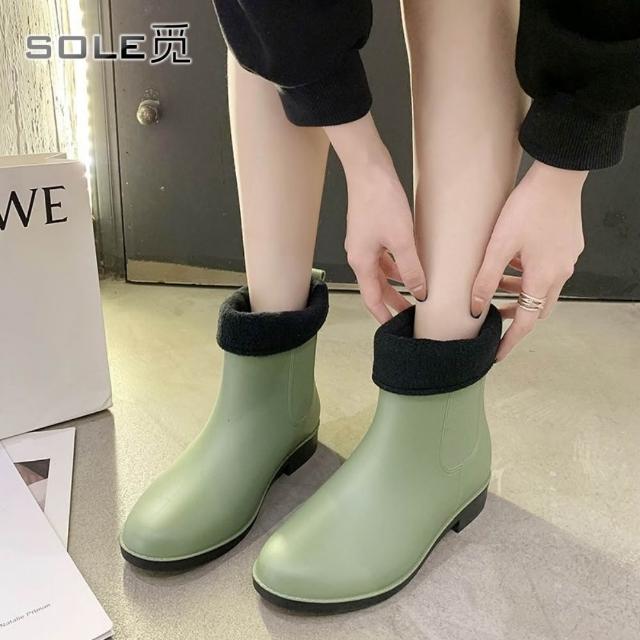SOLE 覓 36~40 水鞋雨靴耐磨短女筒雨鞋中筒時尚廚房成人保暖膠工作鞋防水防水