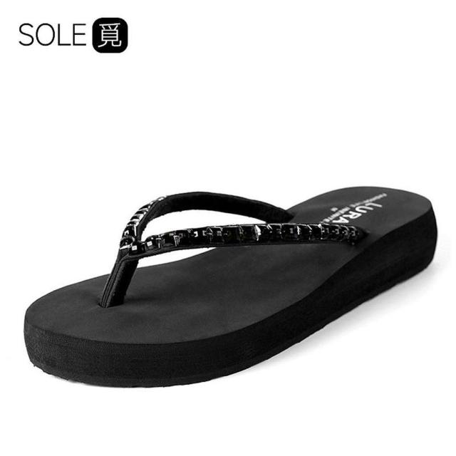 SOLE覓 女 式 人字拖 中跟水磚坡跟 夾腳 厚底 涼拖 防滑 耐磨 沙灘 拖鞋