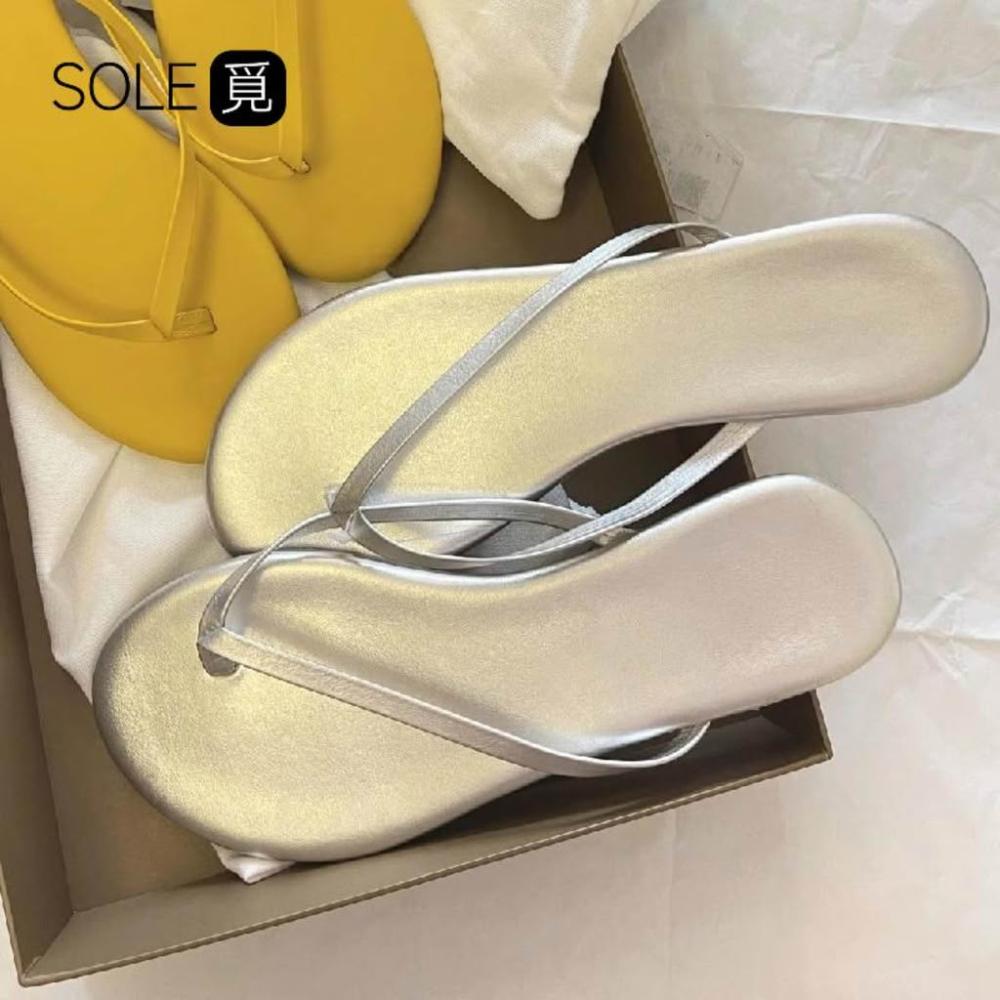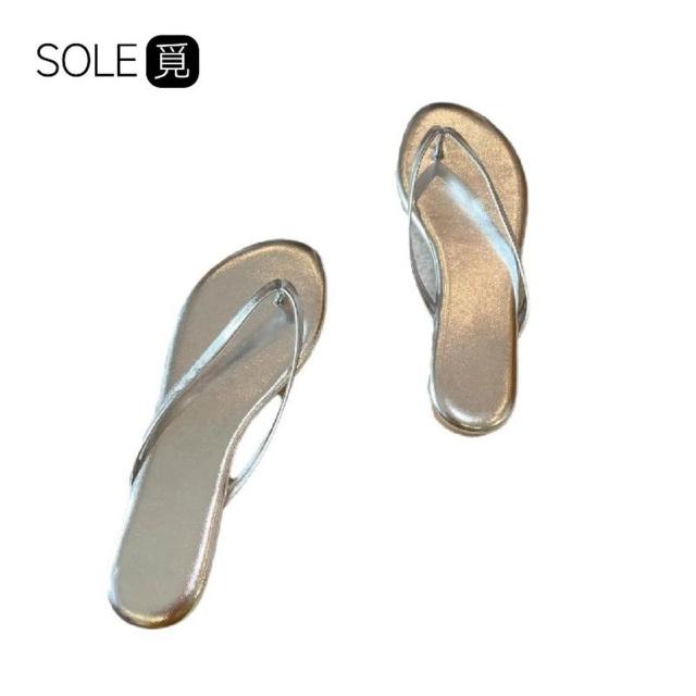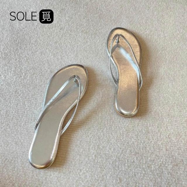 SOLE覓 銀色 人字拖 女 2024 夏季 外穿 平底 夾腳 沙灘 海邊 拖鞋 大碼人字新品 防滑