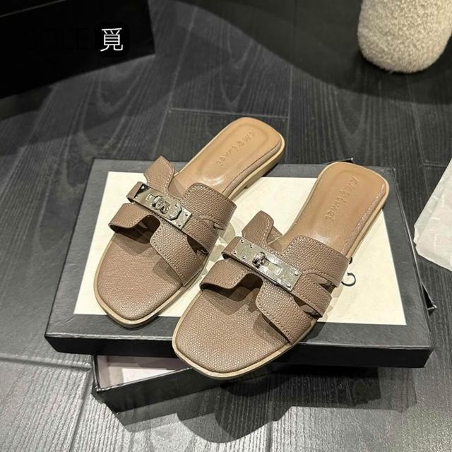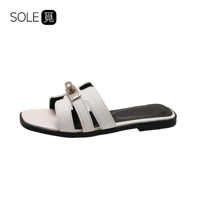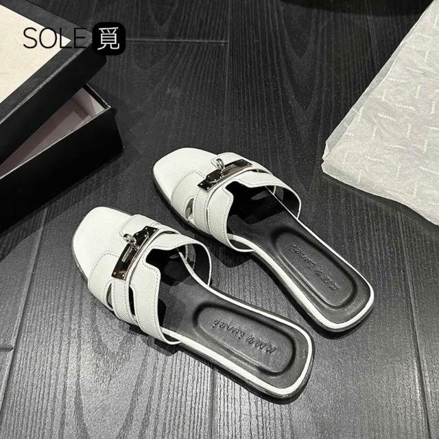 SOLE覓 網紅 爆款圓頭 涼 拖鞋 女 外穿 2025 夏季 新款 法式 平底 沙灘 度假 一字 拖潮