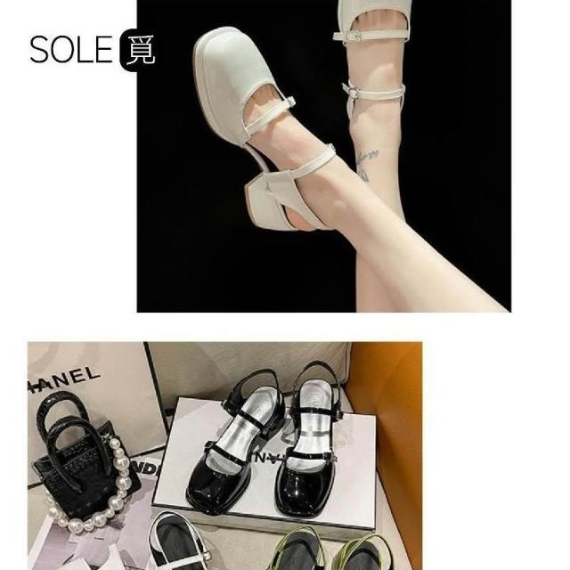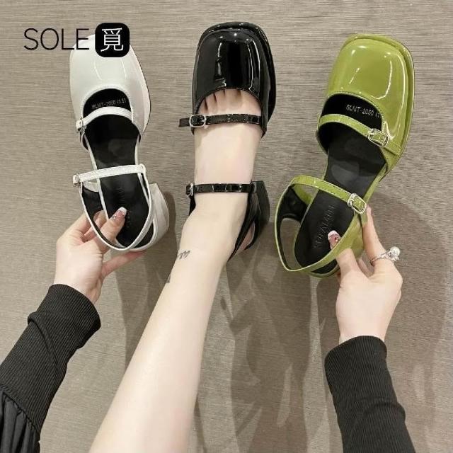 SOLE覓 包頭 涼鞋 女 2025年 夏季 新款 復古 方頭 一字 扣帶 瑪麗珍 後空 粗跟 單鞋 春