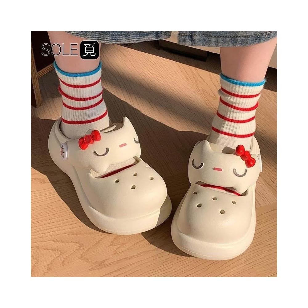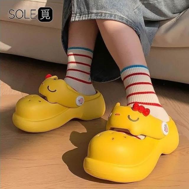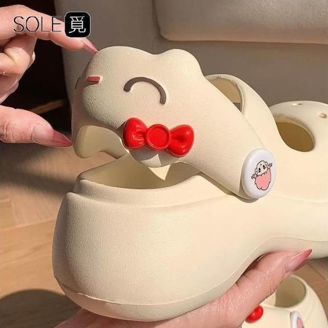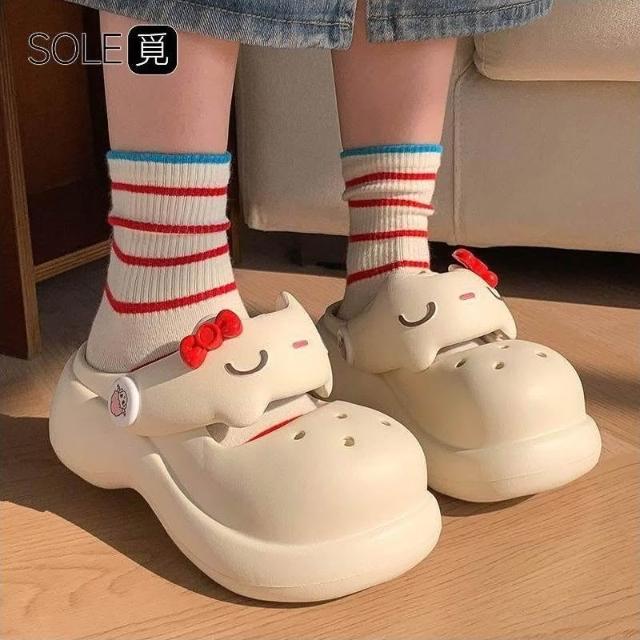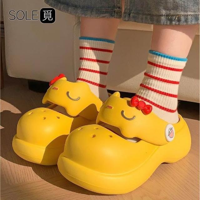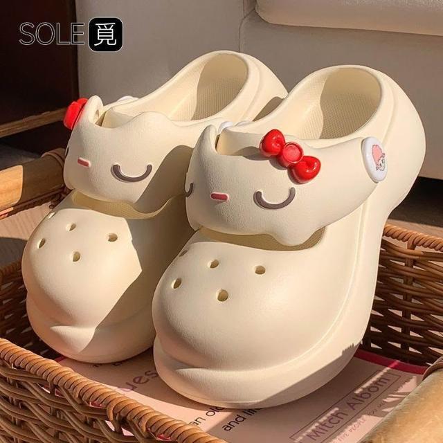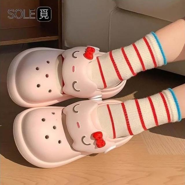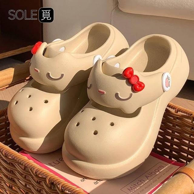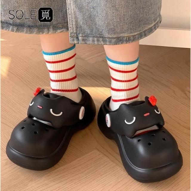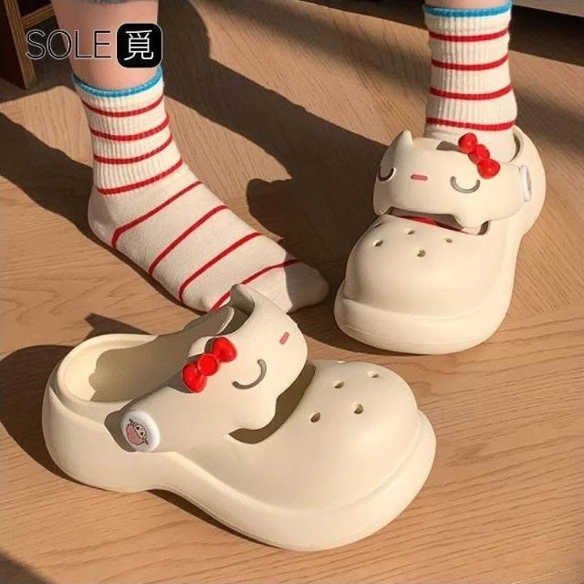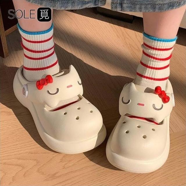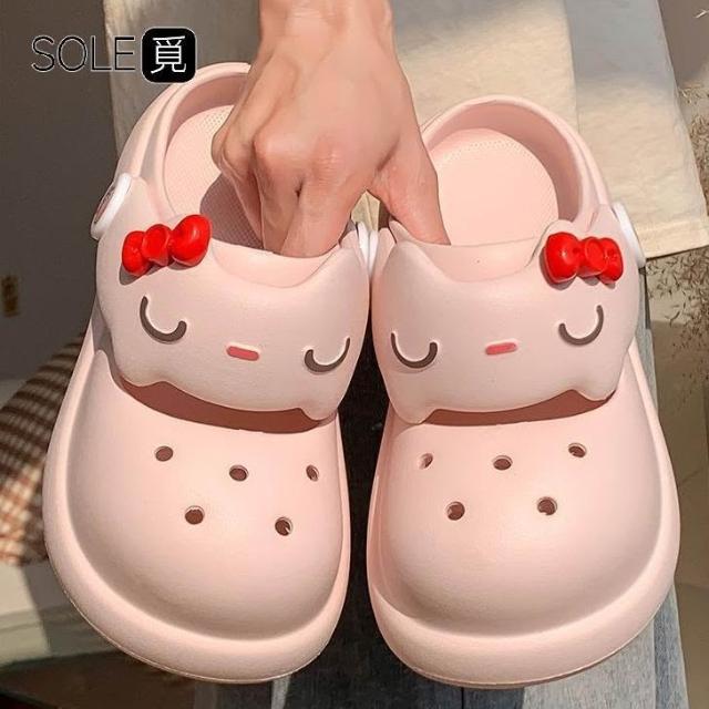 SOLE覓 可愛 卡通 洞洞鞋少 女 厚底 高級感貓咪 包頭 涼 拖鞋 沙灘 防滑 踩屎感 夏季