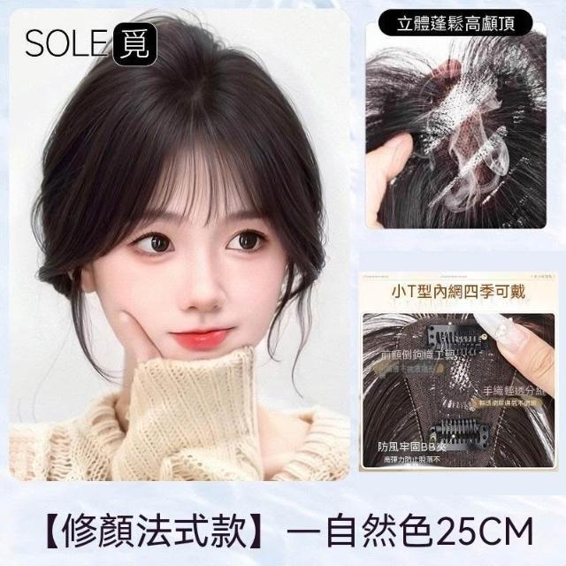 SOLE覓 斜劉海片假髮女頭頂真發補發增髮量混高顱頂輕薄劉海混絲斜劉海