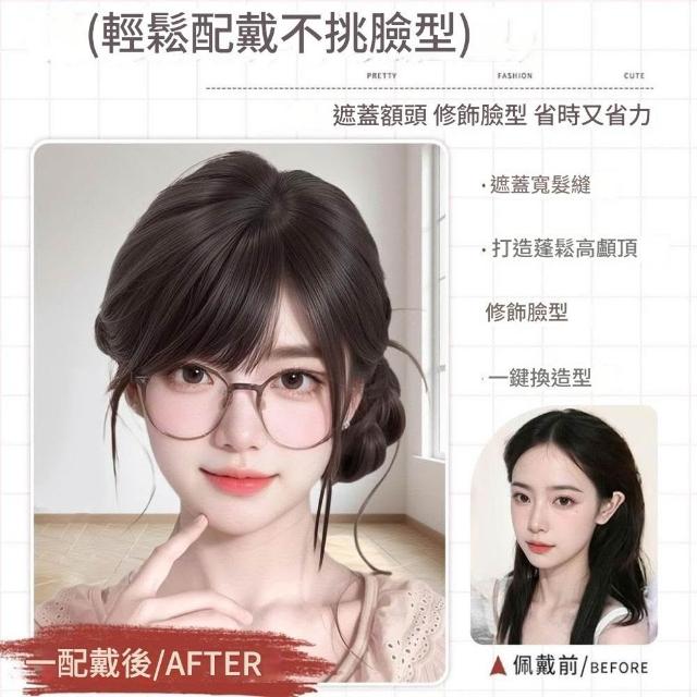 SOLE覓 斜劉海片假髮女頭頂真發補發增髮量混高顱頂輕薄劉海混絲斜劉海