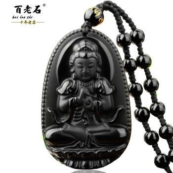 天然黑曜石本命佛吊墜 十二生肖本命佛八大守護神男女款掛