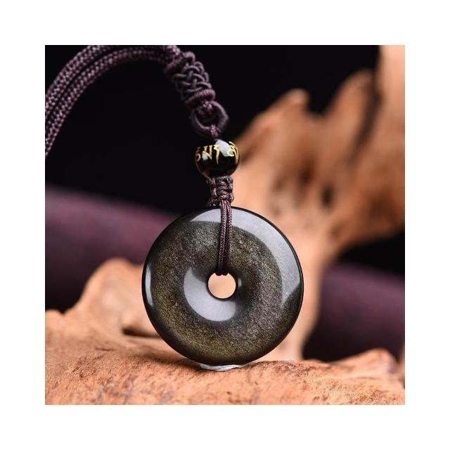 7A烏金冰種七彩金黑曜石平安扣吊墜 水晶項鏈