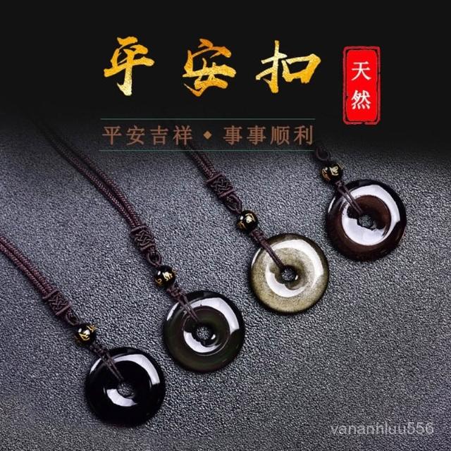 7A烏金冰種七彩金黑曜石平安扣吊墜 水晶項鏈