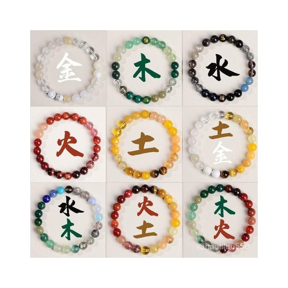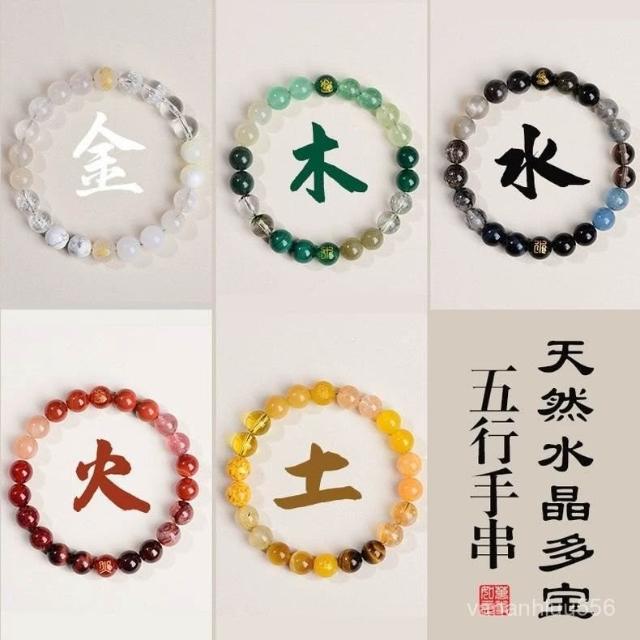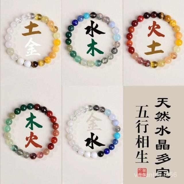 五行水晶喜用金木水火土相生五色五福天然多寶禮物平衡男女手鏈