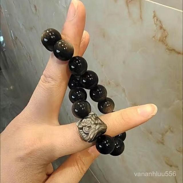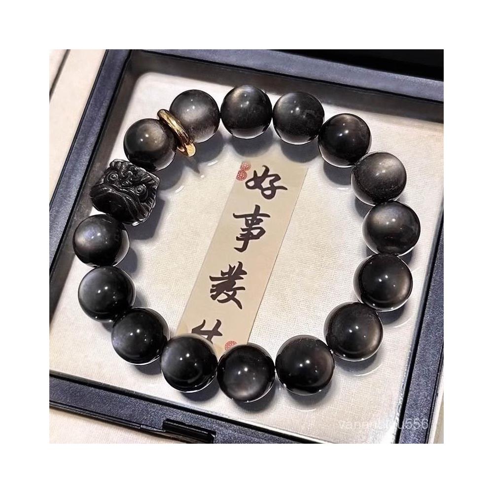 純天然水晶銀矅石手串真品收藏級雙眼轉運招財情侶手鏈衕款黑曜石