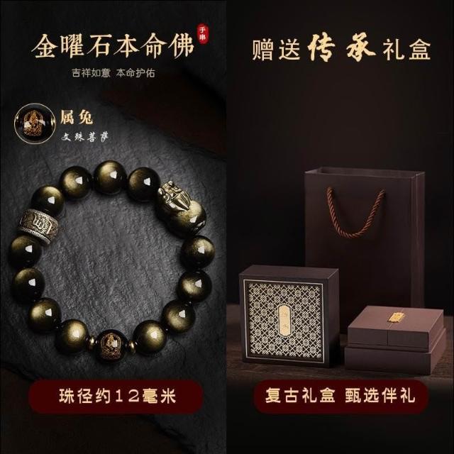 黑曜石手鏈男士金曜石招財貔貅手串女本命佛盤文玩佛珠