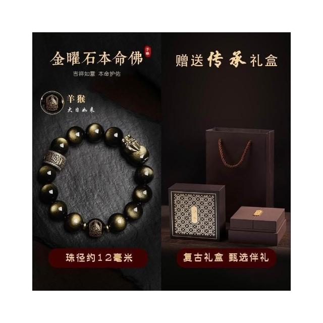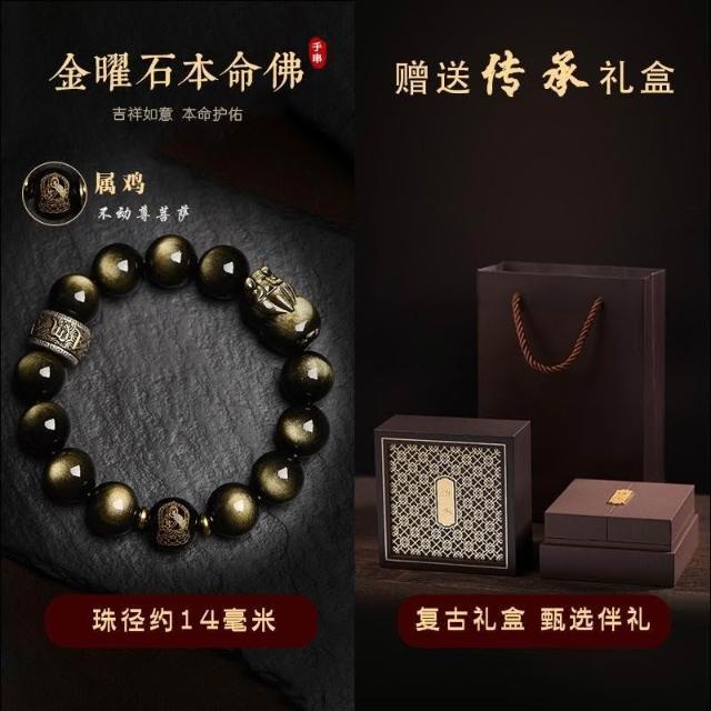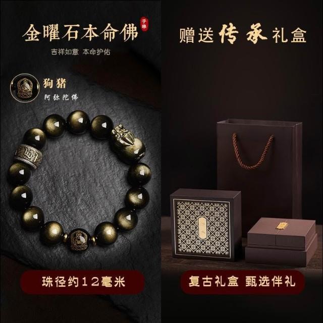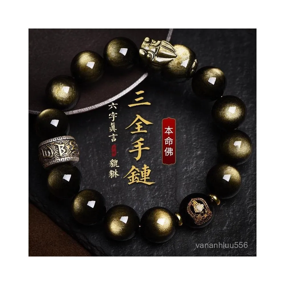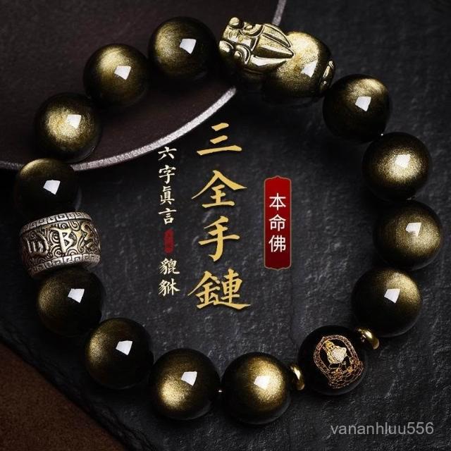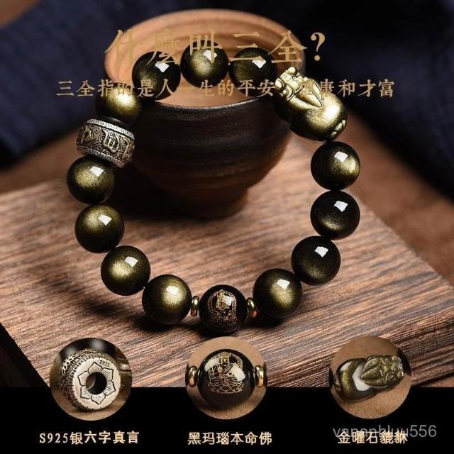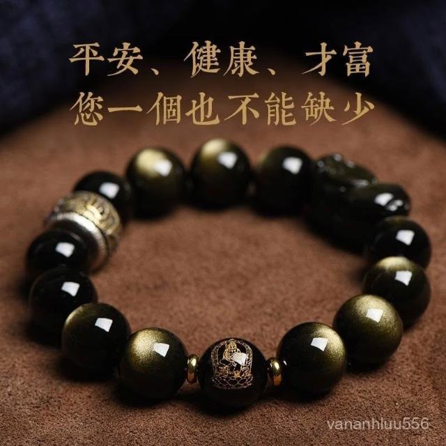 黑曜石手鏈男士金曜石招財貔貅手串女本命佛盤文玩佛珠