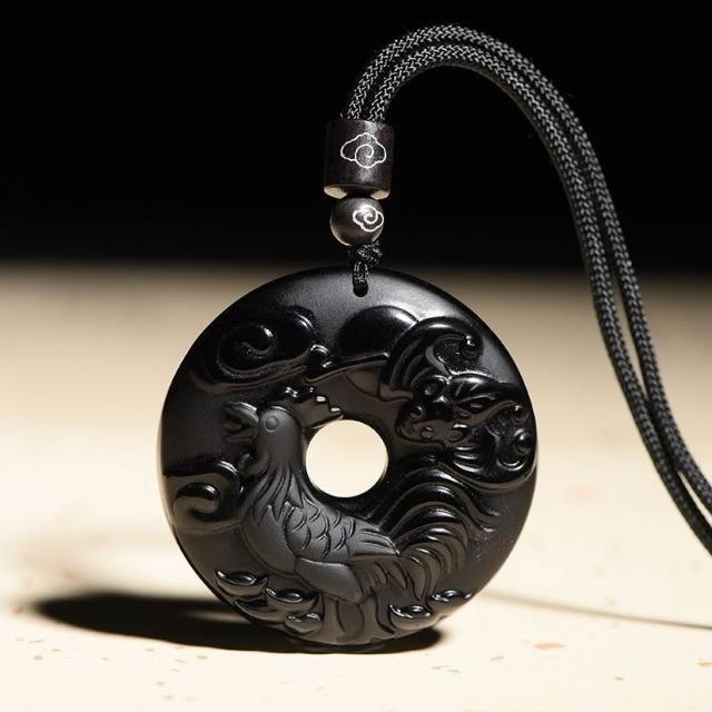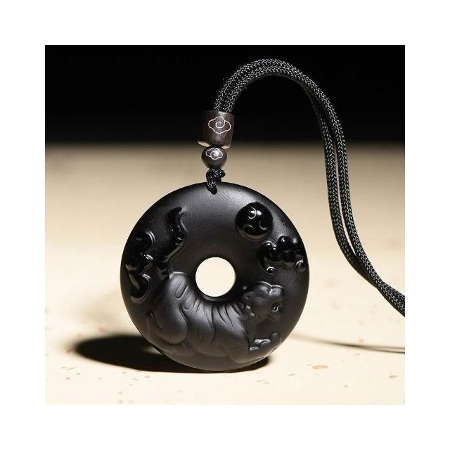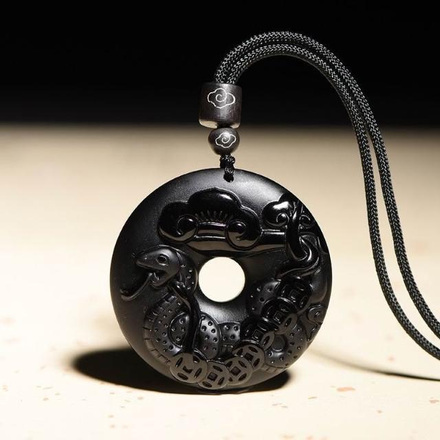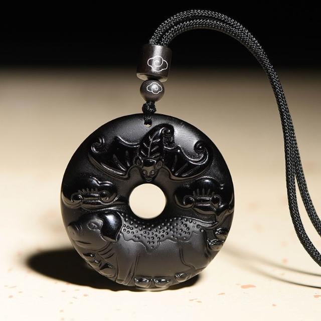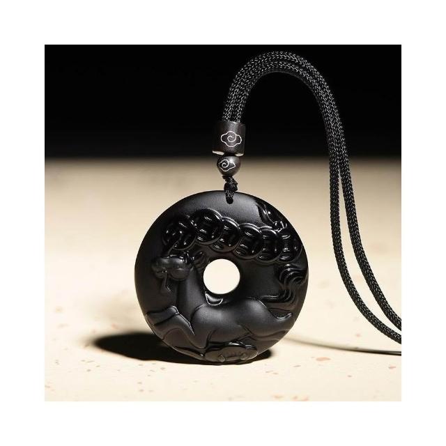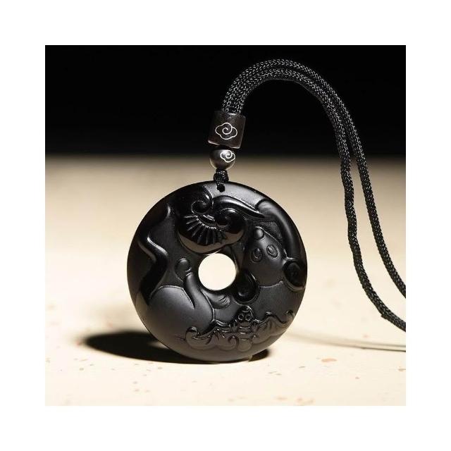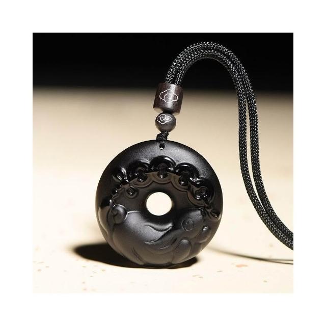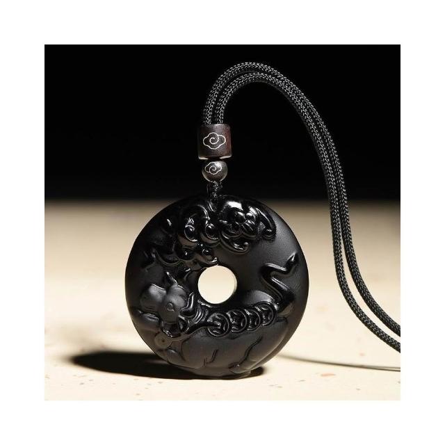 天然黑曜石十二生肖平安扣吊墜項鏈男女掛件本命年飾品禮物平安