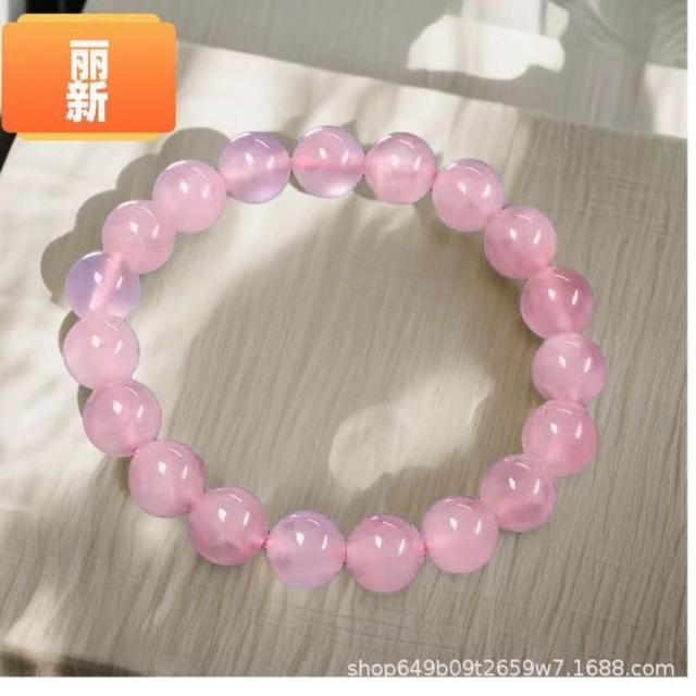 天然粉水晶手串 圓珠 芙蓉晶半成品 DIY飾品配件