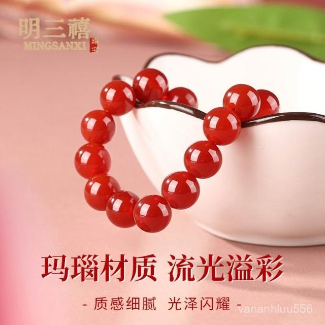 天然紅瑪瑙手鏈女轉運珠玉髓佛珠本命蛇年紅色瑪瑙水晶正品男手串