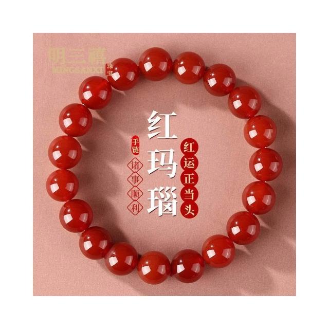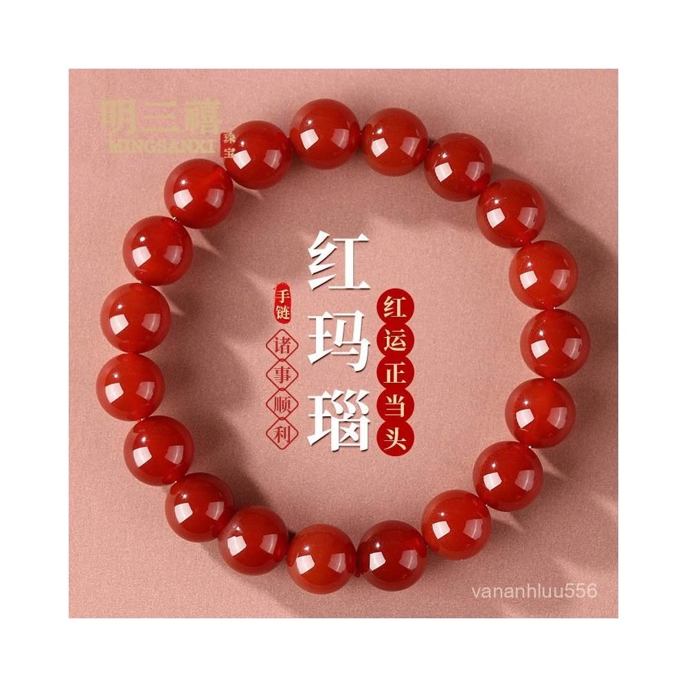 天然紅瑪瑙手鏈女轉運珠玉髓佛珠本命蛇年紅色瑪瑙水晶正品男手串