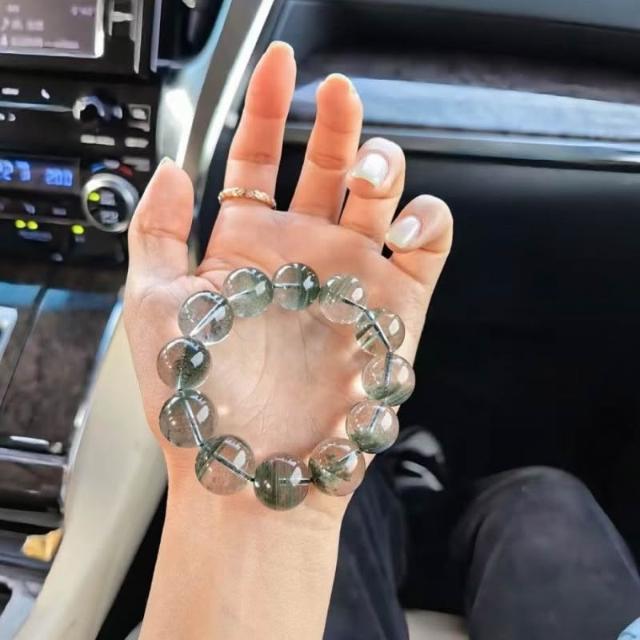 綠幽靈精品天然水晶手串巴西轉運聚寶盆招財單顆男女手串