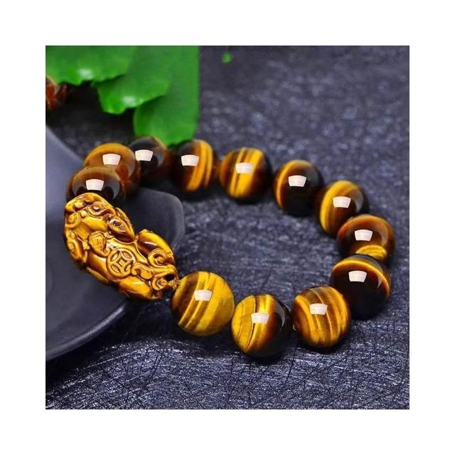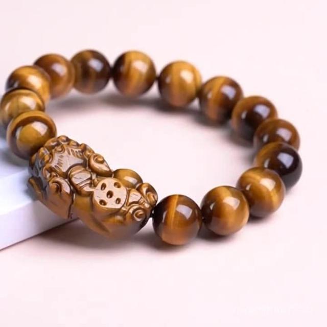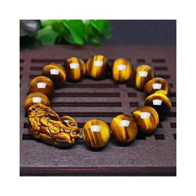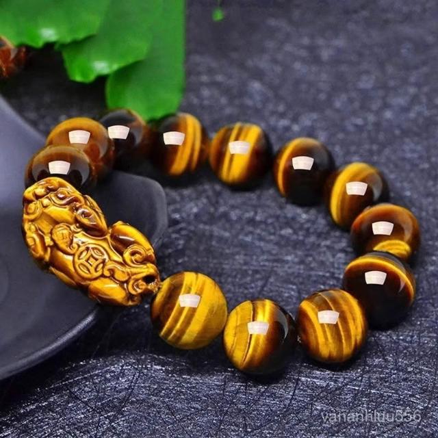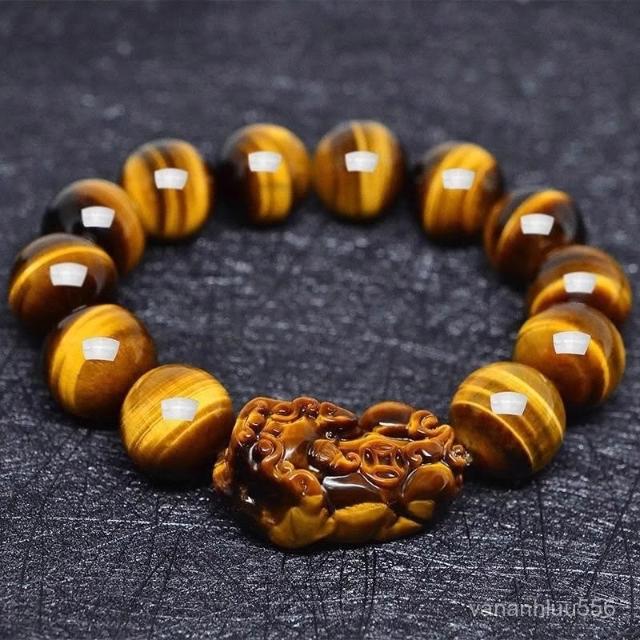 正宗貔貅玉石收藏級黃虎眼石雙貔貅皮丘虎晴石高檔手串男女款飾品