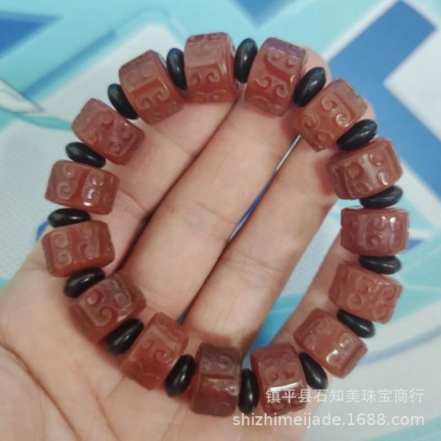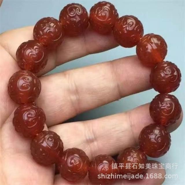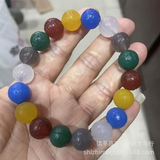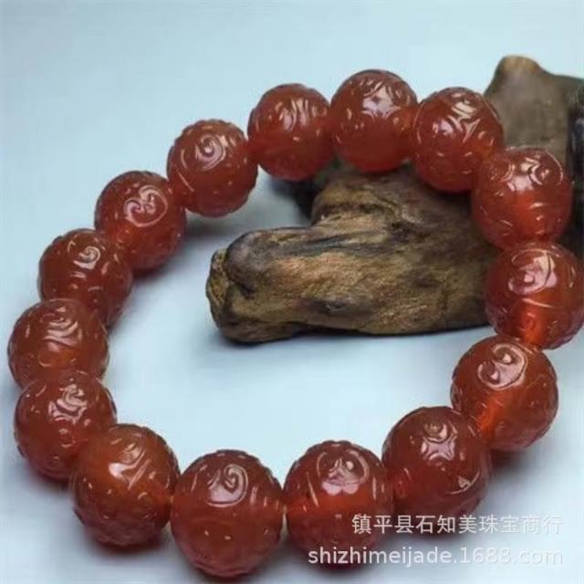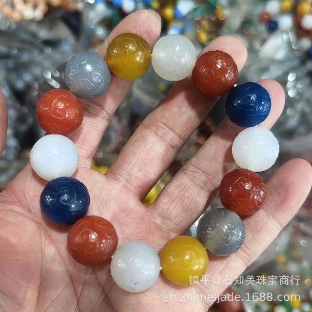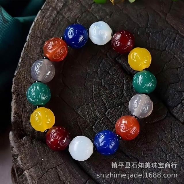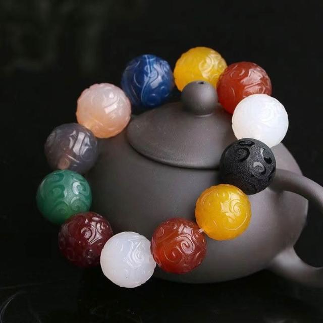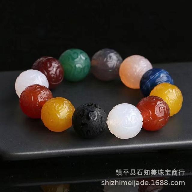 天然瑪瑙迴紋珠手鏈複古款圓珠多寶玉髓轉運珠手串祘盤珠