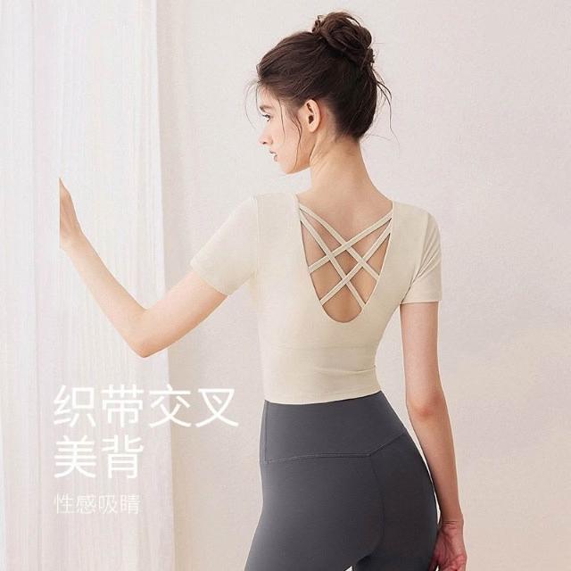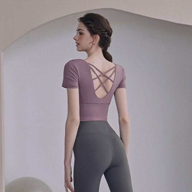 樂樂甄選夏季瑜伽服套裝女高強度運動內衣短袖防震跑步健身房訓練背心新款