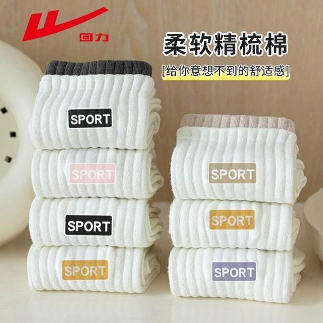 樂樂甄選回力100%正品新疆棉襪子女春秋冬季中筒襪10A抗菌運動襪白色襪子