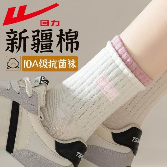 樂樂甄選回力100%正品新疆棉襪子女春秋冬季中筒襪10A抗菌運動襪白色襪子
