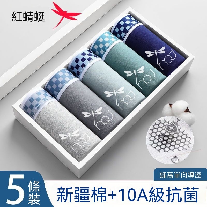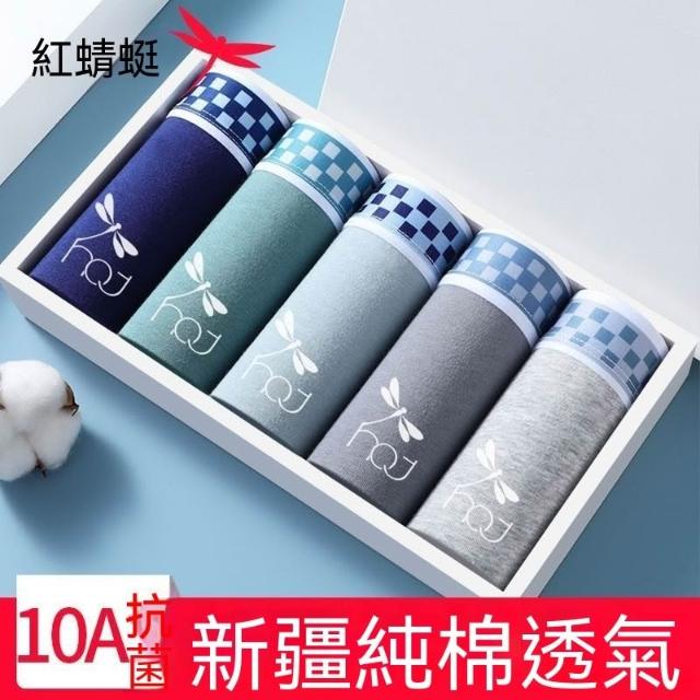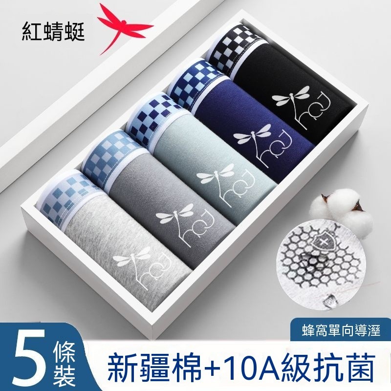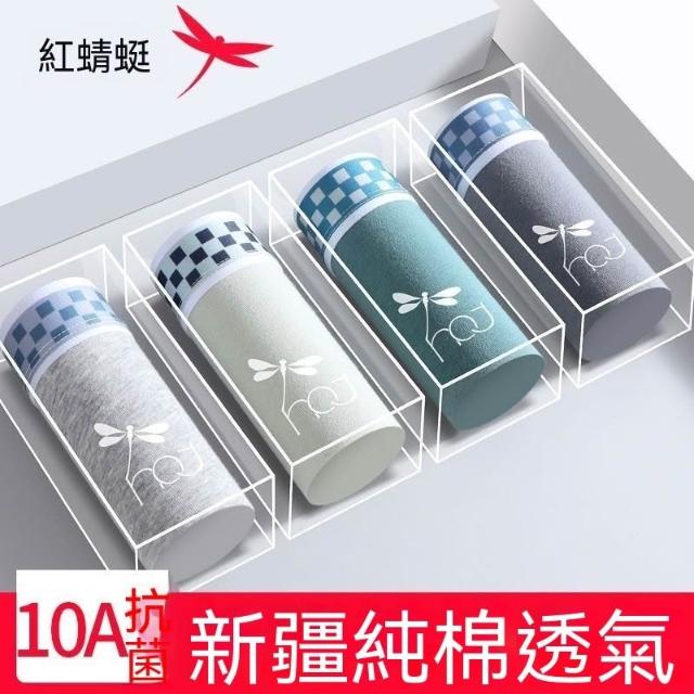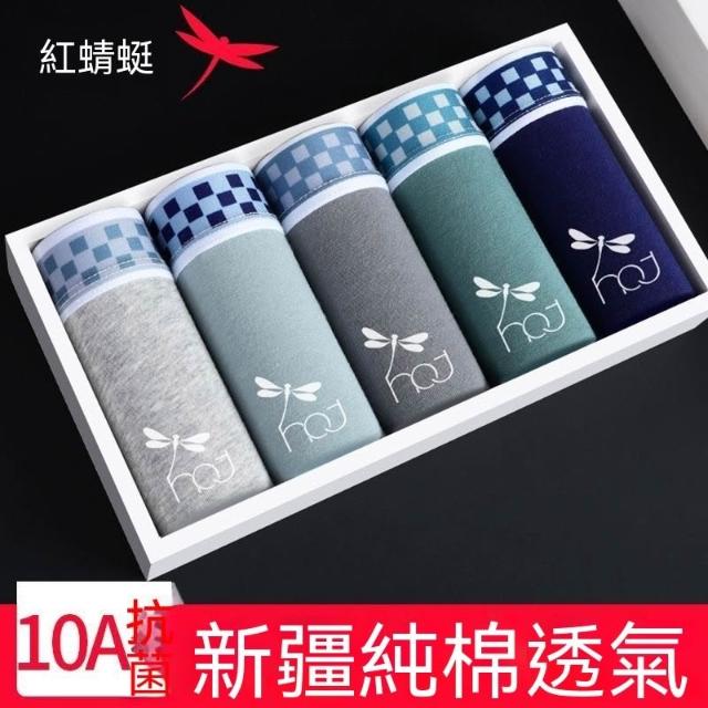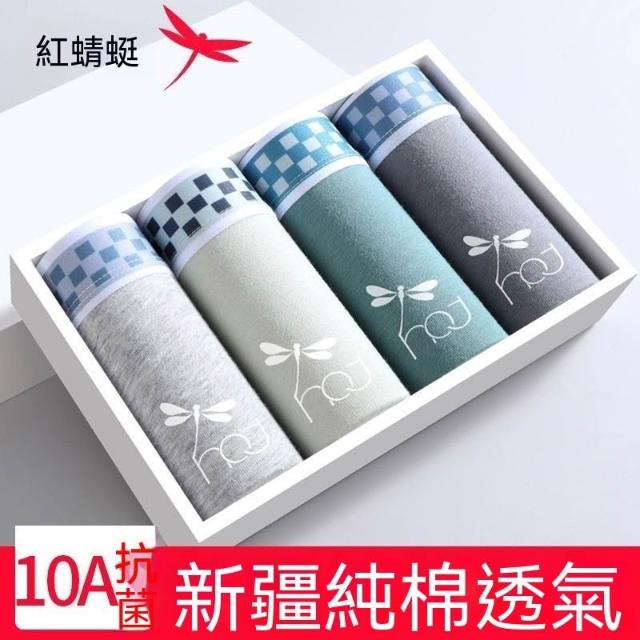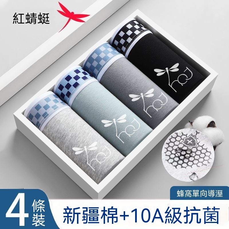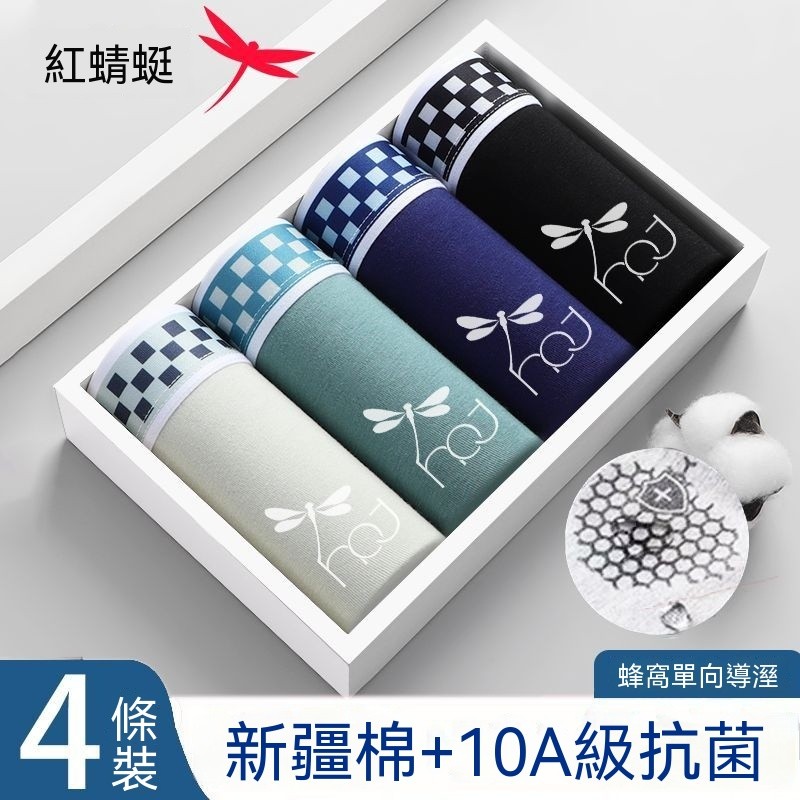 明明嚴選紅蜻蜓男士內褲男純棉透氣舒適10A抗菌四角褲大碼寬鬆平角短褲頭
