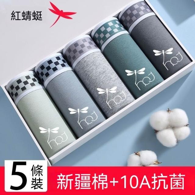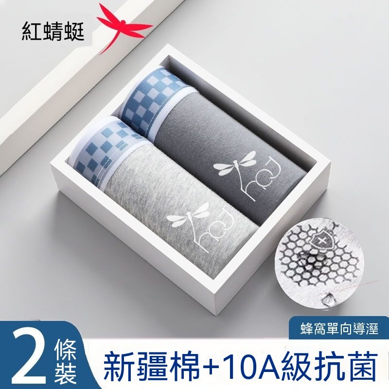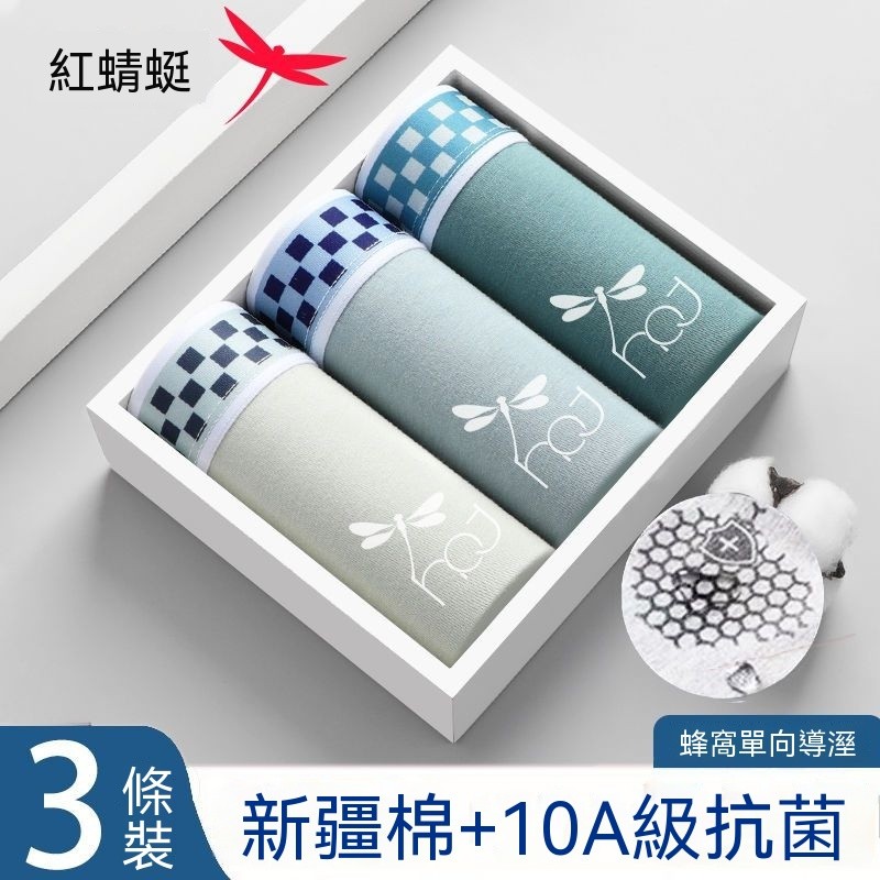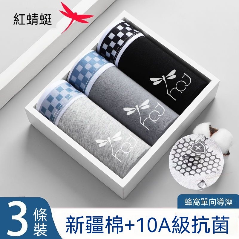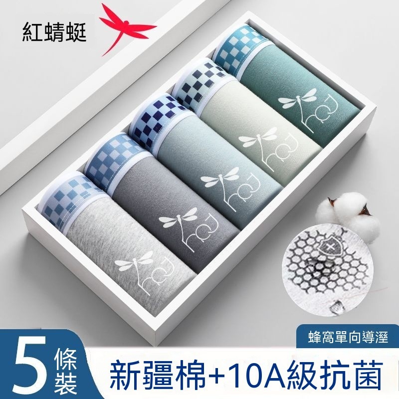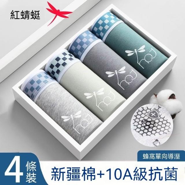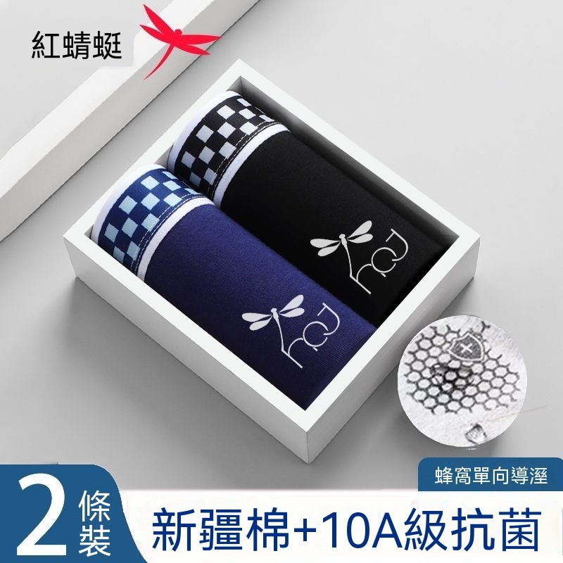 明明嚴選紅蜻蜓男士內褲男純棉透氣舒適10A抗菌四角褲大碼寬鬆平角短褲頭