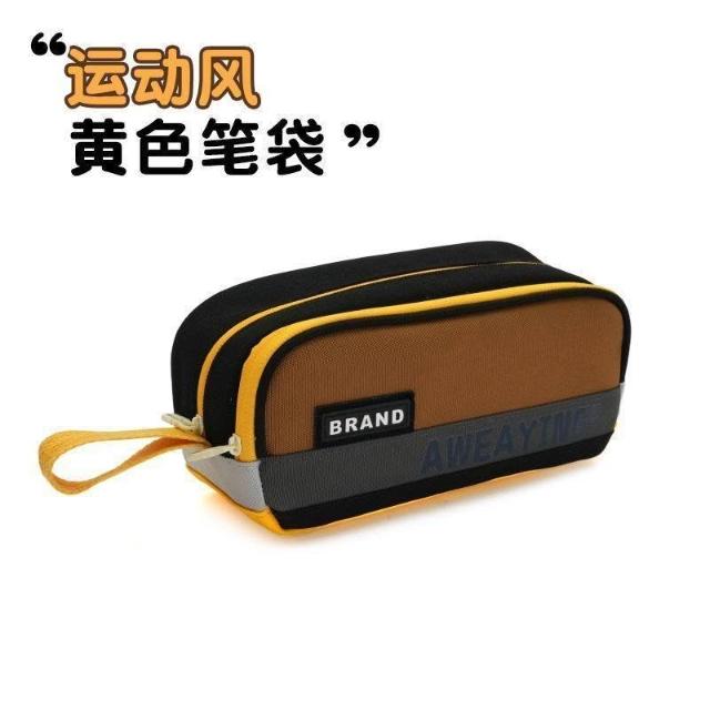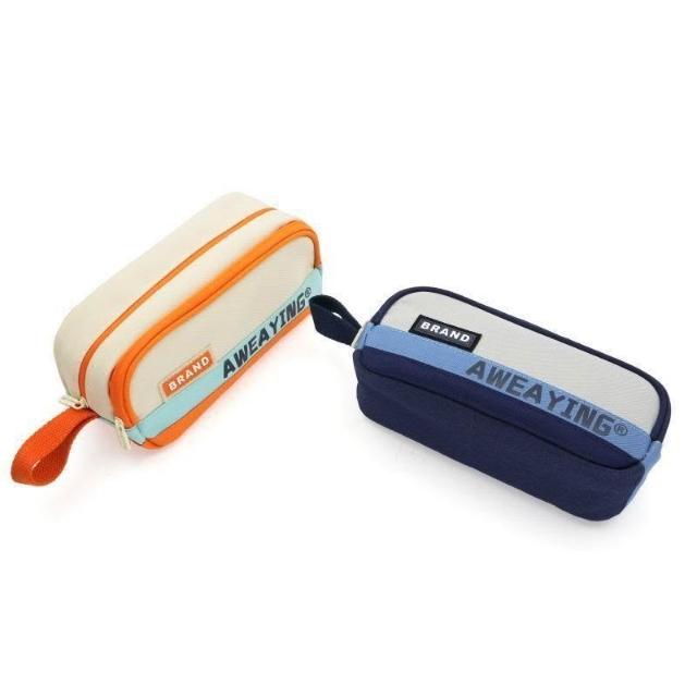 新新甄選新款運動風拼接雙層兒童筆袋男生簡約設計純色ins中小學生文具袋
