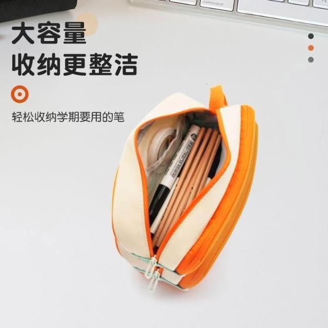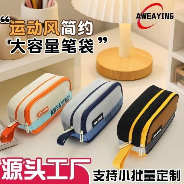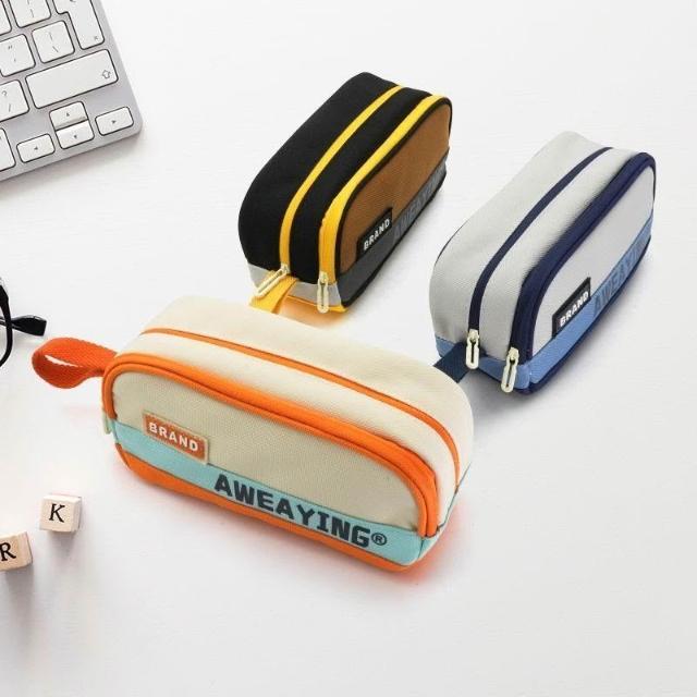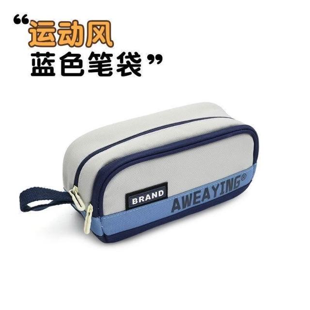 新新甄選新款運動風拼接雙層兒童筆袋男生簡約設計純色ins中小學生文具袋