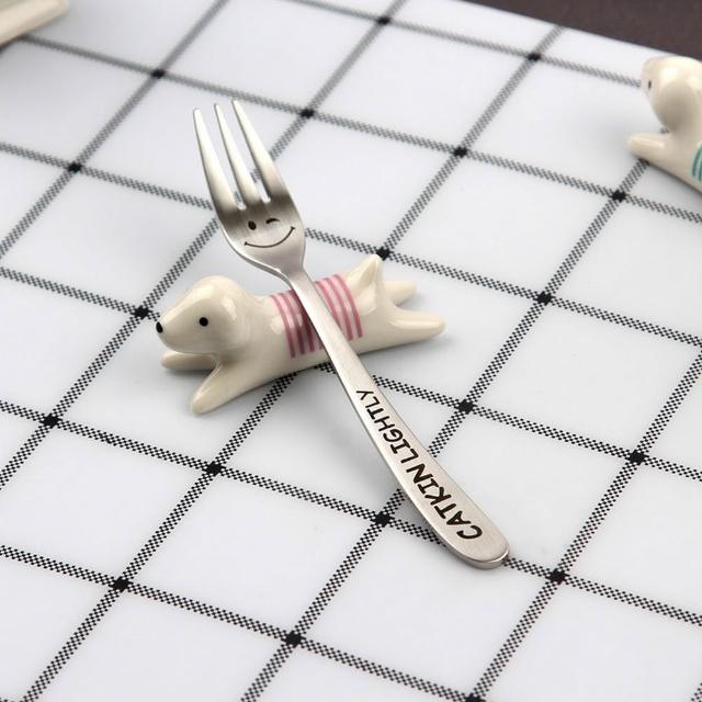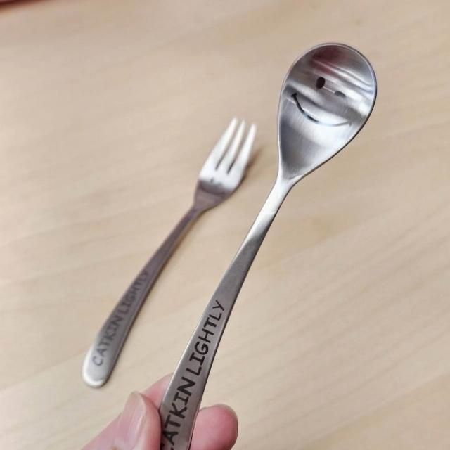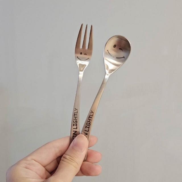 CATKIN LIGHTLY韓國微笑眨眨眼不鏽鋼餐具-短柄叉匙組 水果叉 布丁匙 甜點匙