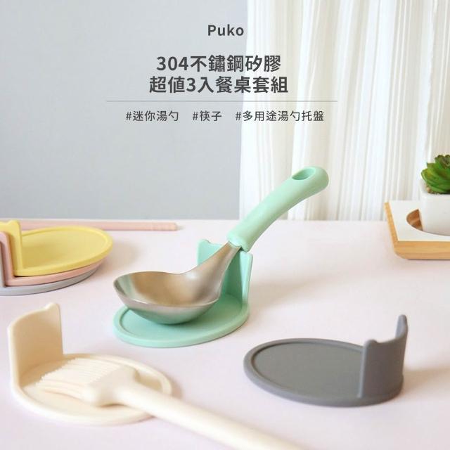 Puko 304韓國不鏽鋼矽膠超值3入餐桌套組 湯勺 湯匙 筷子 餐具 收納