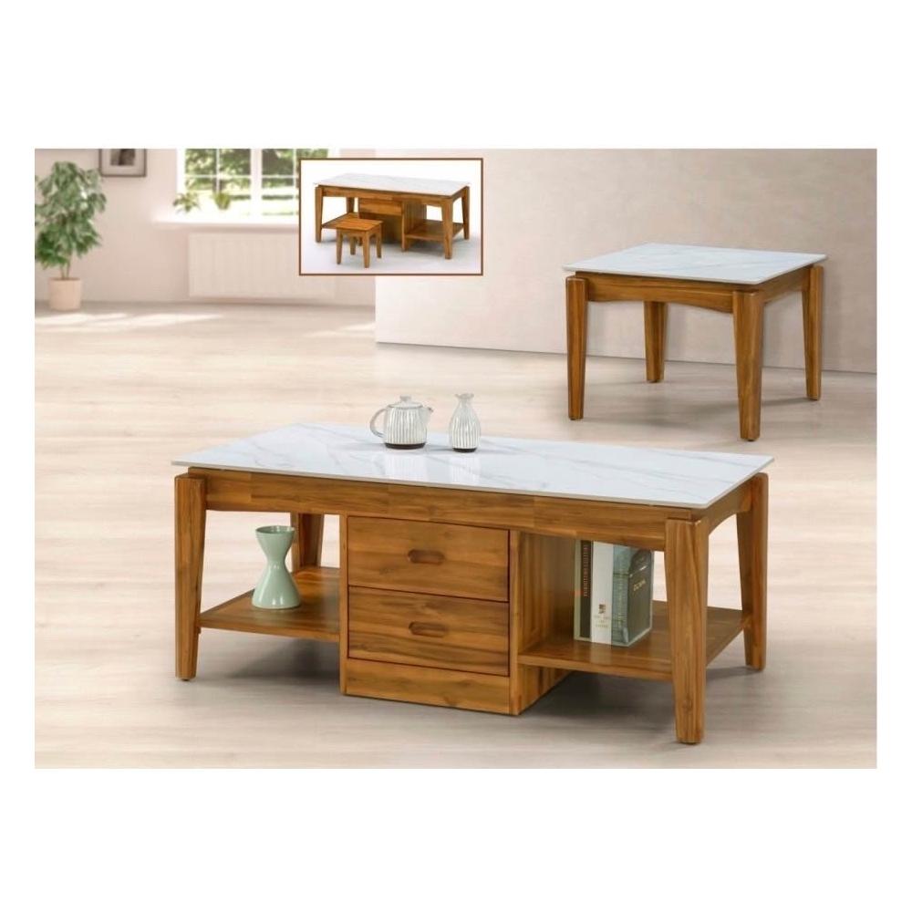 全台傢俱 QM-23 雪山白岩板相思木大小茶几組 木心板 台灣出貨 傢俱工廠特賣