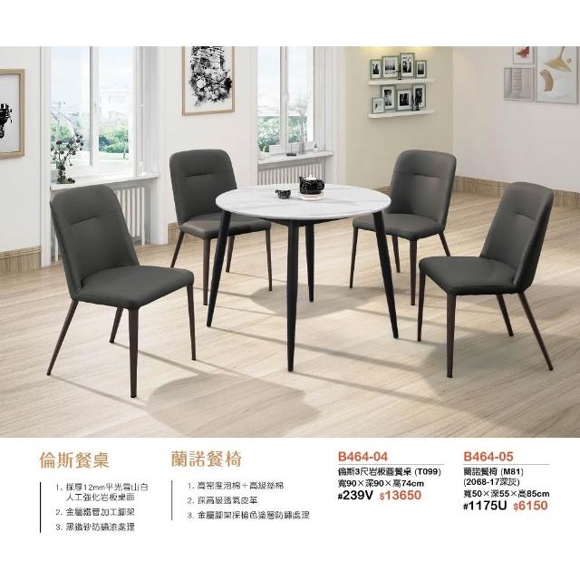 全台傢俱HY-26 倫斯 3尺岩板圓餐桌 / 蘭諾餐椅(深灰)