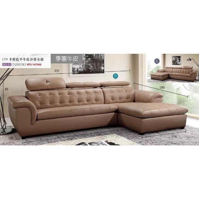 全台傢俱 TY-21 17型 半牛皮卡其色 L型沙發組 傢俱工廠特賣