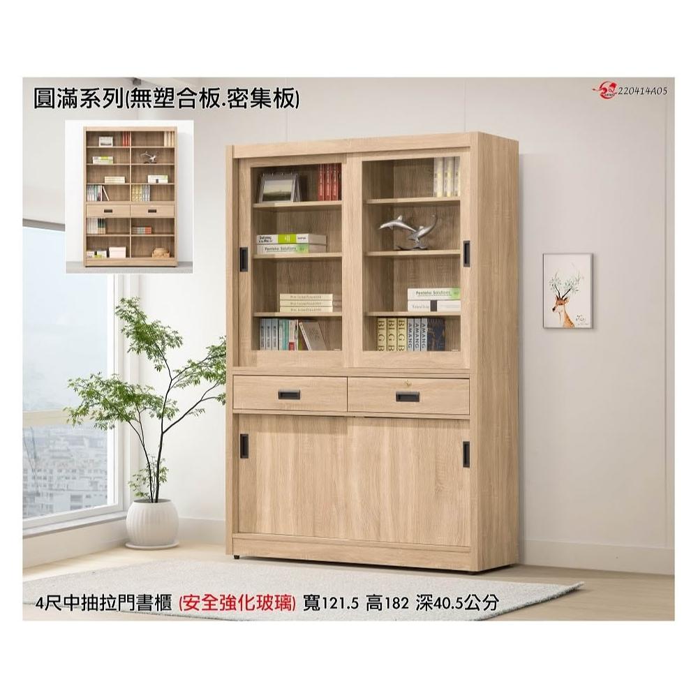 全台傢俱 AZ-25 圓滿4尺中抽拉門書櫃 家具工廠特賣