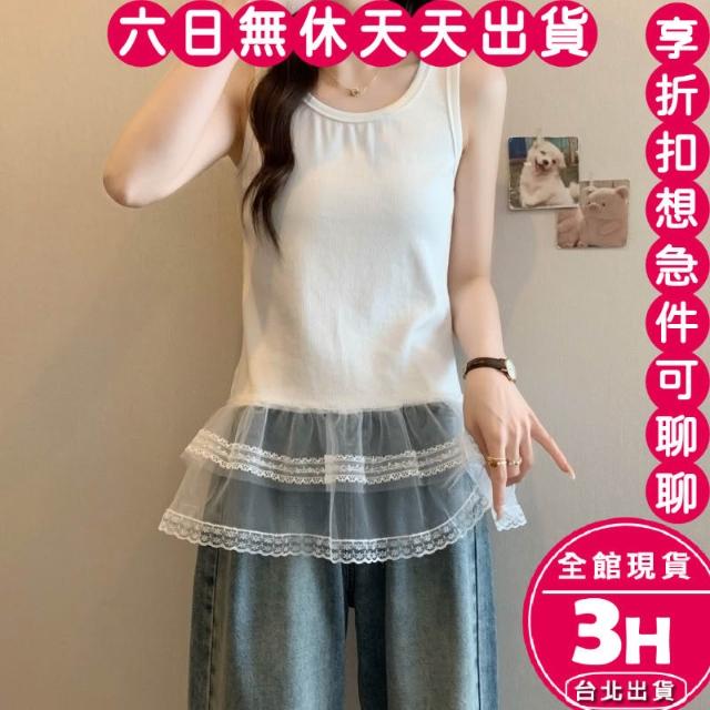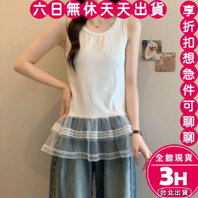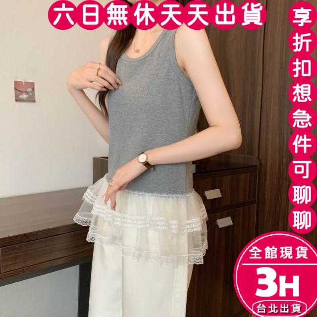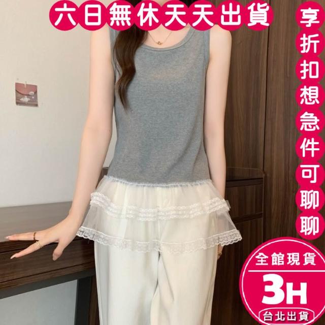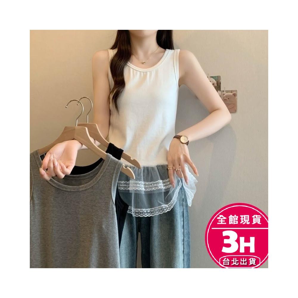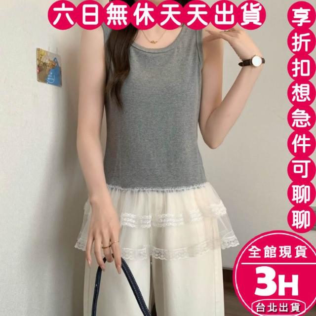 AS 梨卡隔日到貨 女裝 上衣 針織衫 蕾絲拼接 吊帶背心 寬鬆短袖 百搭上衣 夏天 內搭背心SW0589【現貨24H】