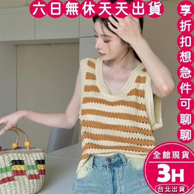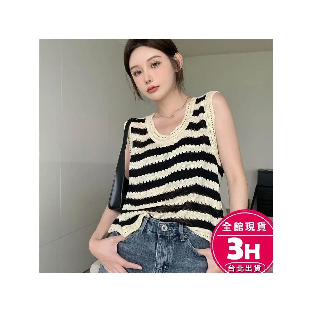 AS 梨卡隔日到貨 女裝 針織背心 吊帶 背心 無袖背心 無袖上衣 夏天衣服 條紋背心 衣服女 BR1898【現貨24H】