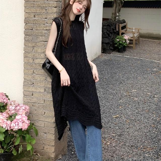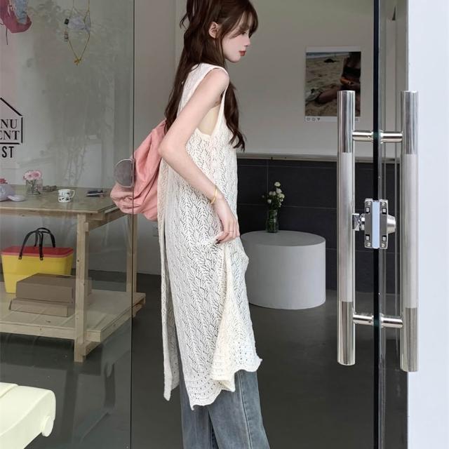 AS 梨卡隔日到貨 女裝 上衣 針織背心裙 鏤空背心 針織小吊帶 開岔無袖 中長版背心 無袖上衣JR0019【現貨24H】
