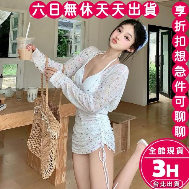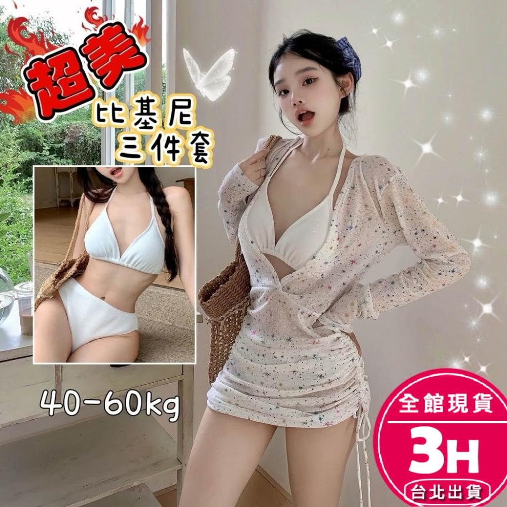 AS 梨卡隔日到貨 三件式泳裝 泳衣 比基尼 白色長袖 顯瘦比基尼 度假風泳裝 海島泳裝 辣妹泳裝FC093【現貨24H】