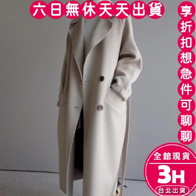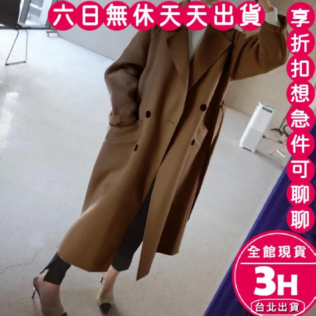 AS 梨卡隔日到貨 毛呢外套 毛呢大衣【雙排釦】女裝 大衣 長版外套 保暖外套 秋冬外套BR3198【現貨24H】